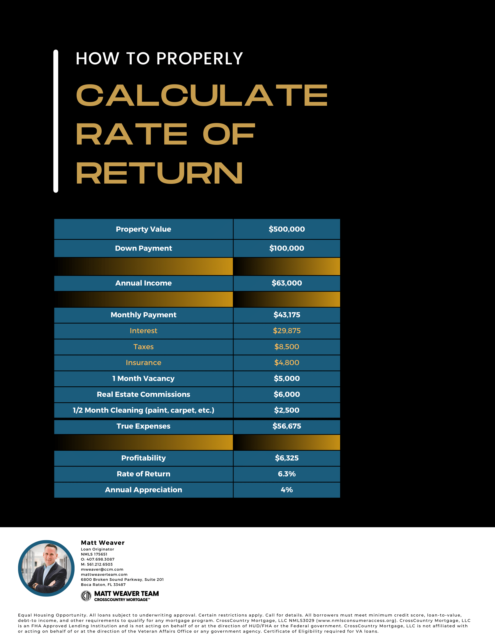 Real estate investors make up 20% of the market. Use this sheet to properly calculate rate of return and attract real estate investors.