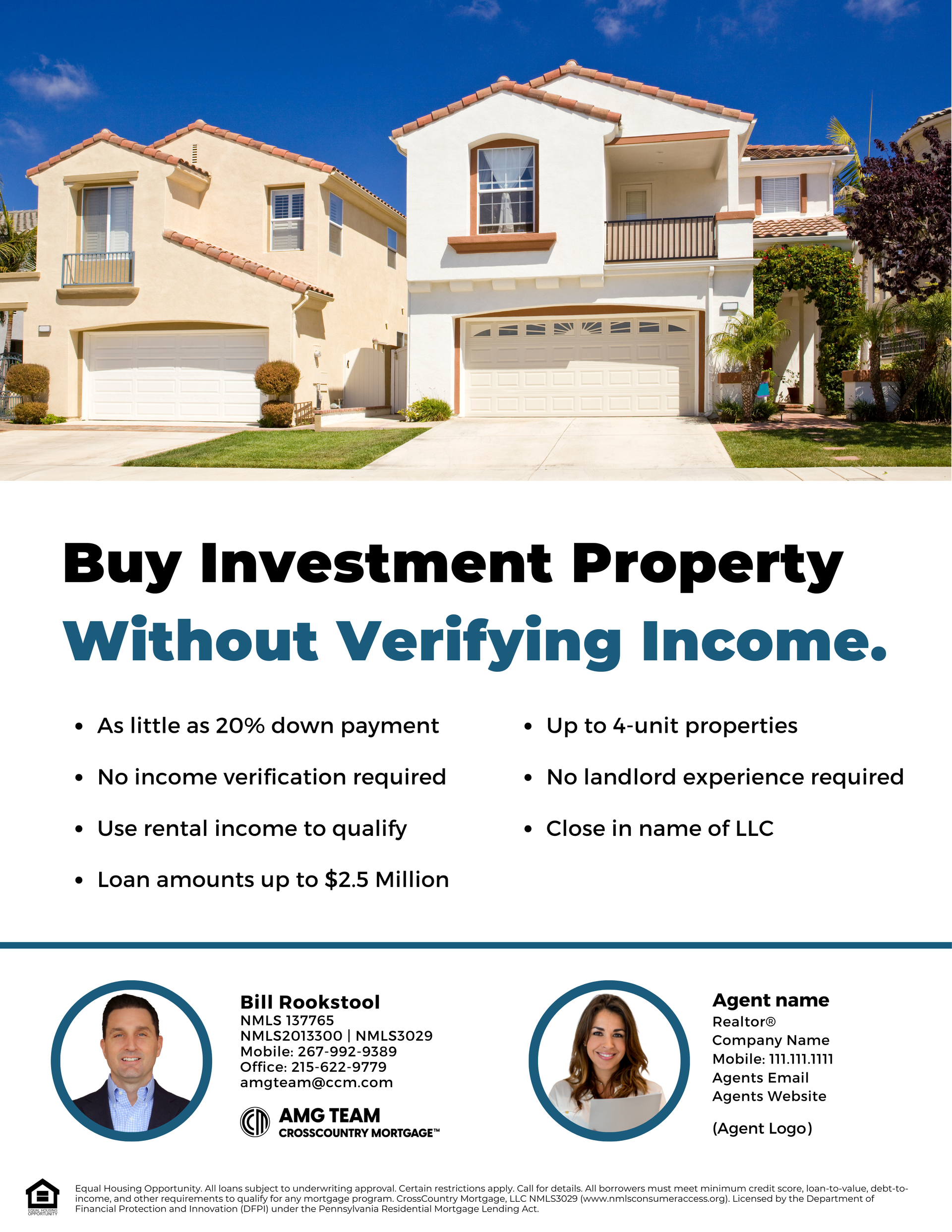 Real estate investors make up 20% of the real estate market. Attract more buyers looking for investment opportunities with this very attractive loan program.