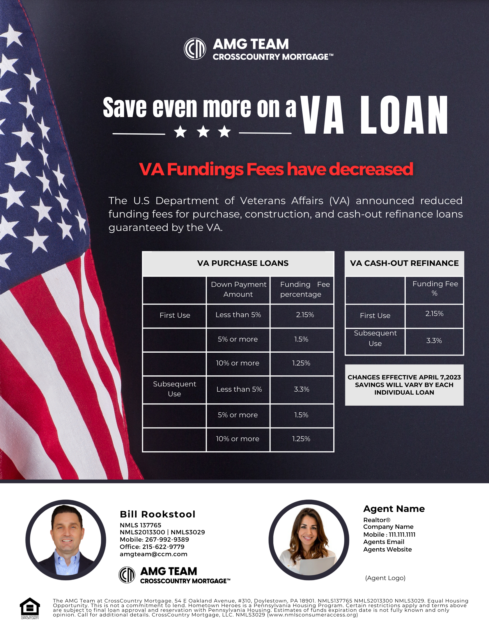 The U.S Department of Veterans Affairs (VA) recently announced reduced funding fees for purchase, construction, and cash-out refinance loans guaranteed by the VA.